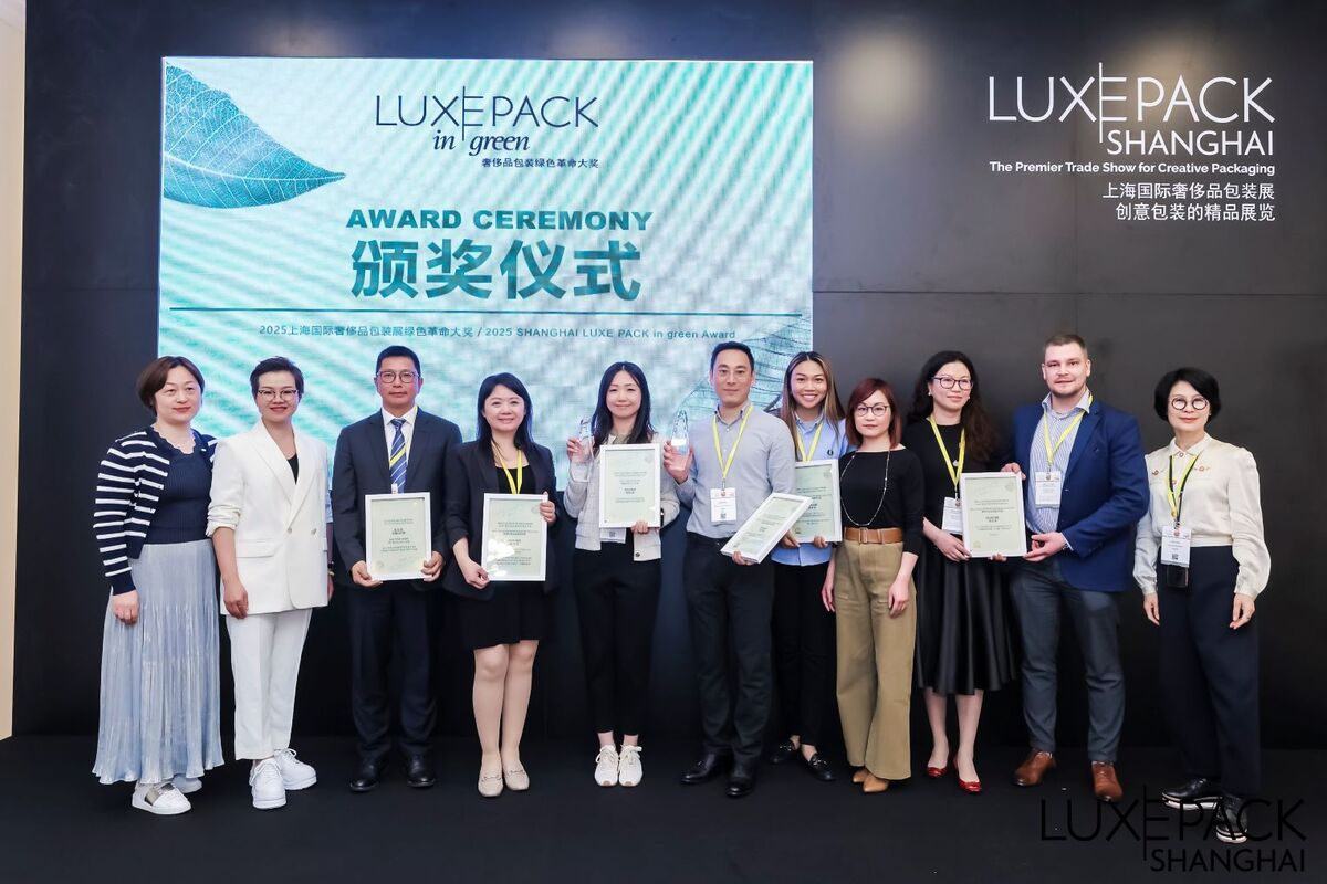 LUXE PACK 綠色大獎於 2025 年 4 月 9 日在上海舉行的奢侈品包裝貿易展上揭曉, 表彰永續設計的產品和公司。